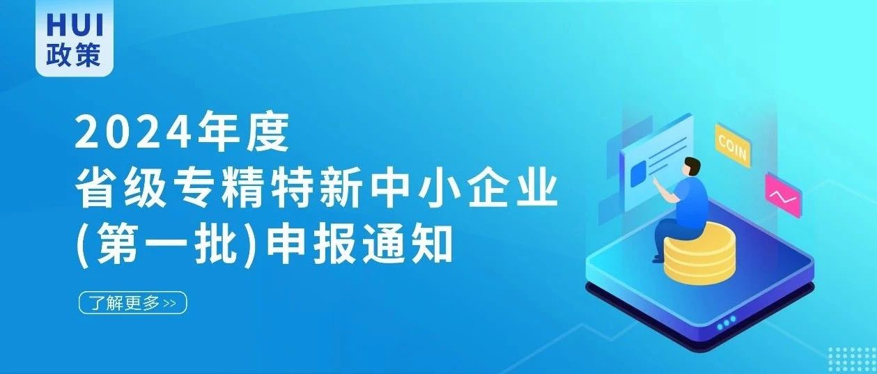 HUI政策丨2024年度省级专精特新中小企业(第一批) 申报认定工作的通知