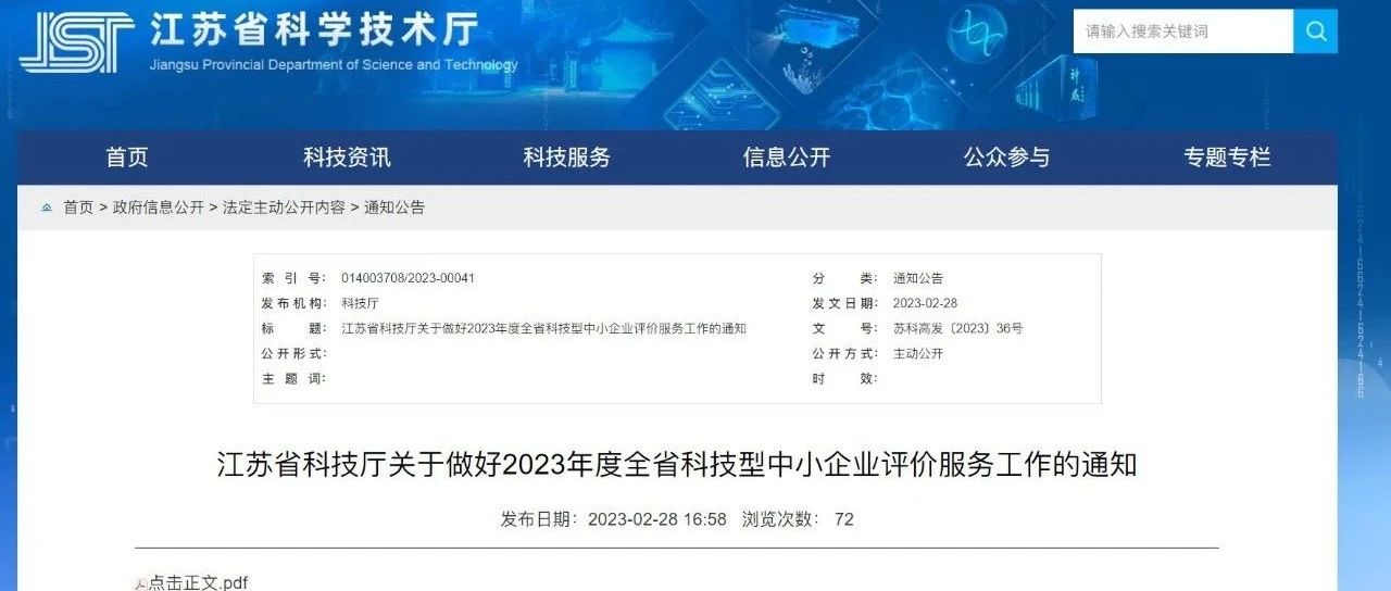 江苏省科技厅关于做好2023年度全省科技型中小企业评价服务工作的通知
